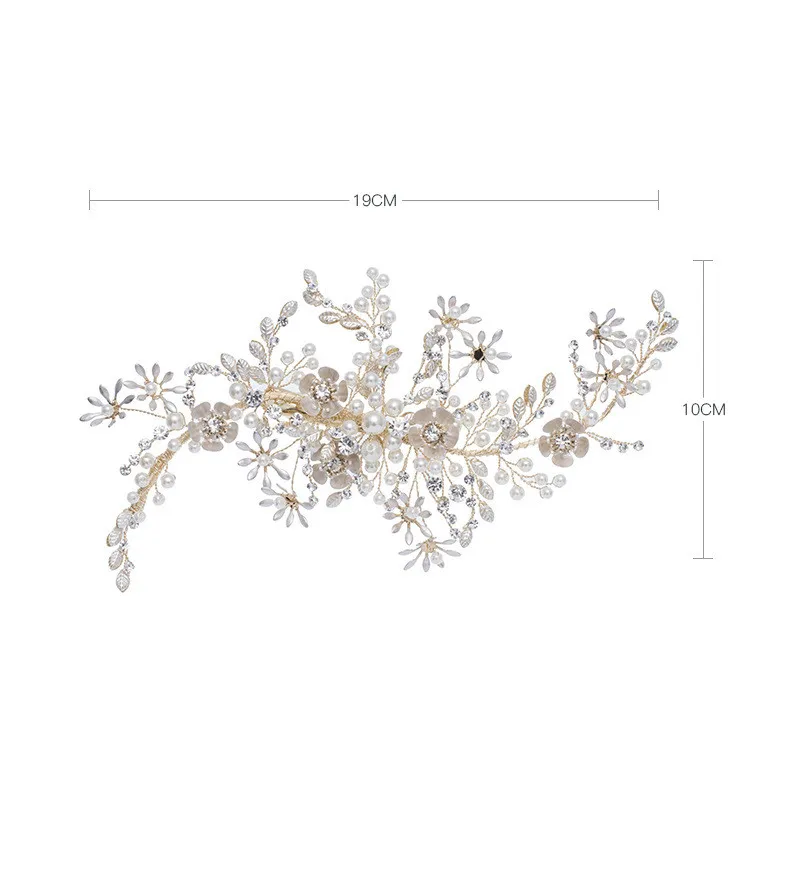 With its delicate detailing and vintage-meets-modern appeal, this bridal headdress complements a wide range of bridal themes, from classic and romantic to bohemian and contemporary.
