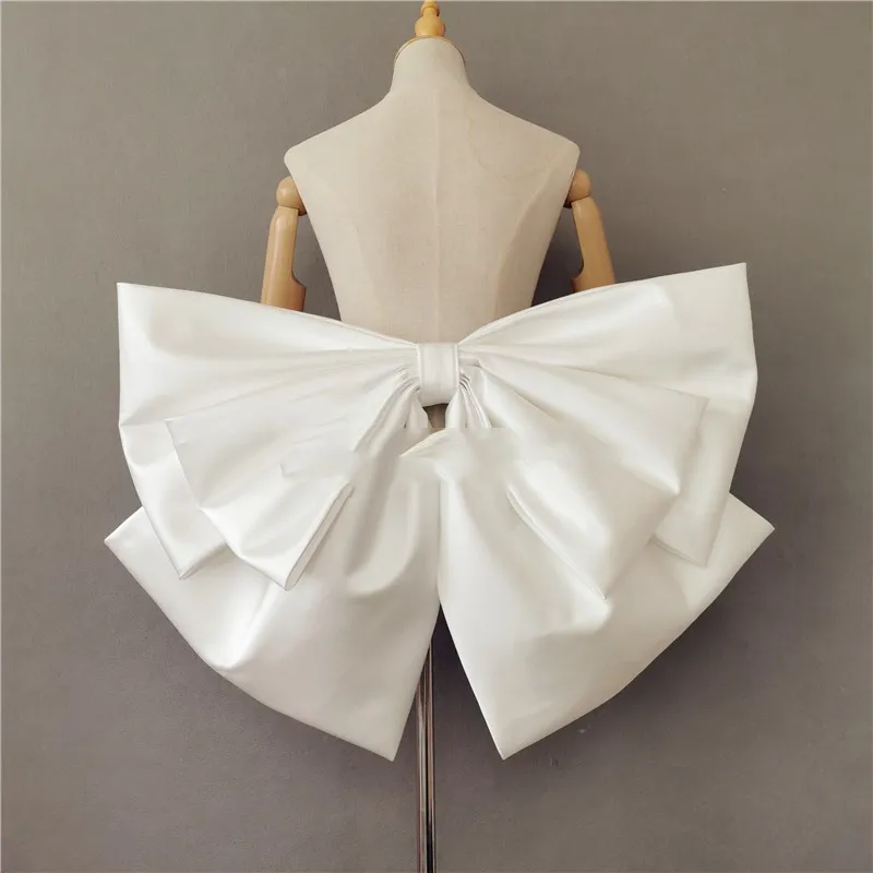 The oversized bow can be placed in various ways to suit your personal style and wedding dress. It can be worn at the back to accentuate the waist or placed at the front or side of the dress for a more dramatic effect. Whether you want it as a show-stopping centerpiece or a subtle detail, the placement of the bow can be customized to fit your desired look. Its versatile design makes it suitable for different bridal styles, from minimalist gowns to more elaborate, couture-inspired dresses.