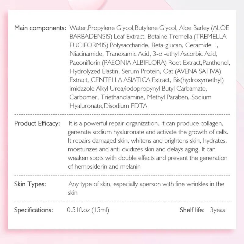 【Product Efiacy】: it is a powerful repair organization. It repairs damaged skin, whitens and brightens the skin, hydrates, hydrates and