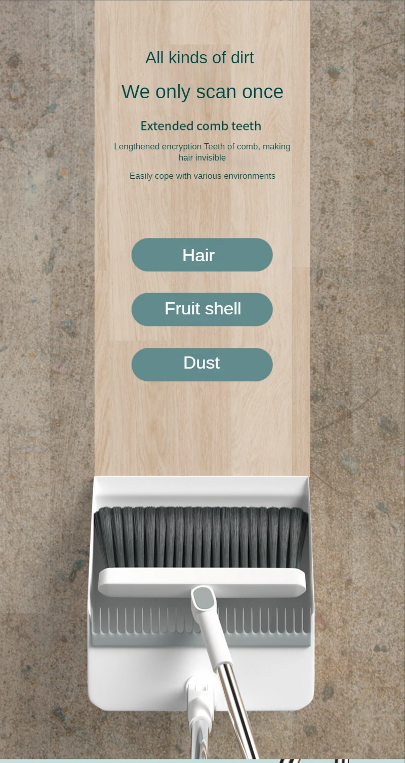 3.PERFECT HEIGHT - No more brooms that are too short and inconvenient to clean! The Broom and Dustpan Combo takes almost no space for storing, when in use, it is much better to work with then your standard dustpan. You can clean standing upright with ease.