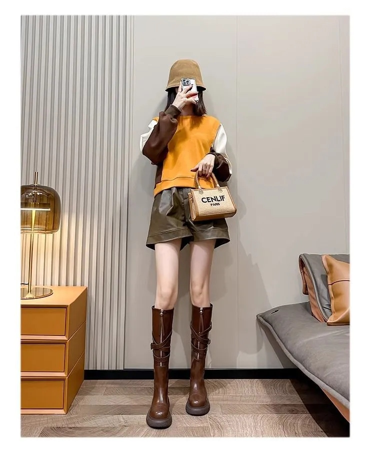 Made from high-quality faux leather (or genuine leather if specified), these boots feature a sleek tall tube shaft that elongates the legs while providing support and structure. The slim, contoured fit flatters the leg line, making them a chic choice for pairing with jeans, leggings, skirts, or dresses.