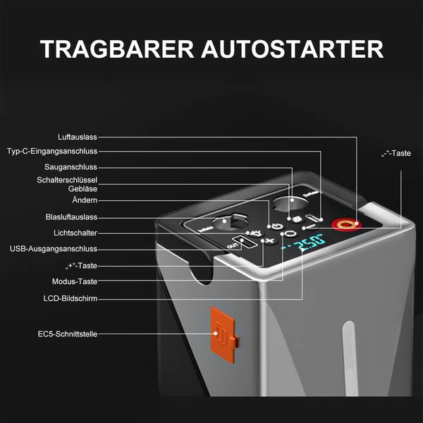 The built-in inflator quickly restores tyre pressure on the go. Perfect for puncture recovery, off-road tyre adjustments, bike tyres, inflatable sports gear, and emergencies.
