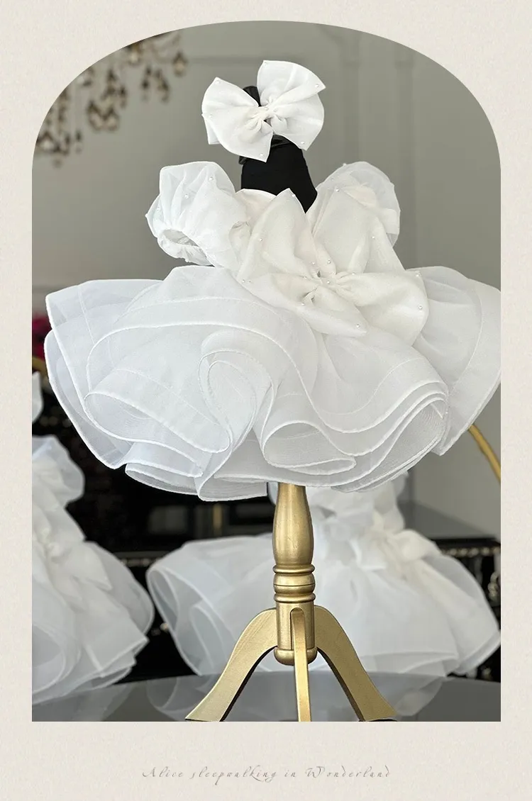 The bubble sleeves add a playful and elegant touch to this stunning princess dress, creating a classic silhouette with a touch of modern style. Your little one will look adorable and feel confident in this unique design.