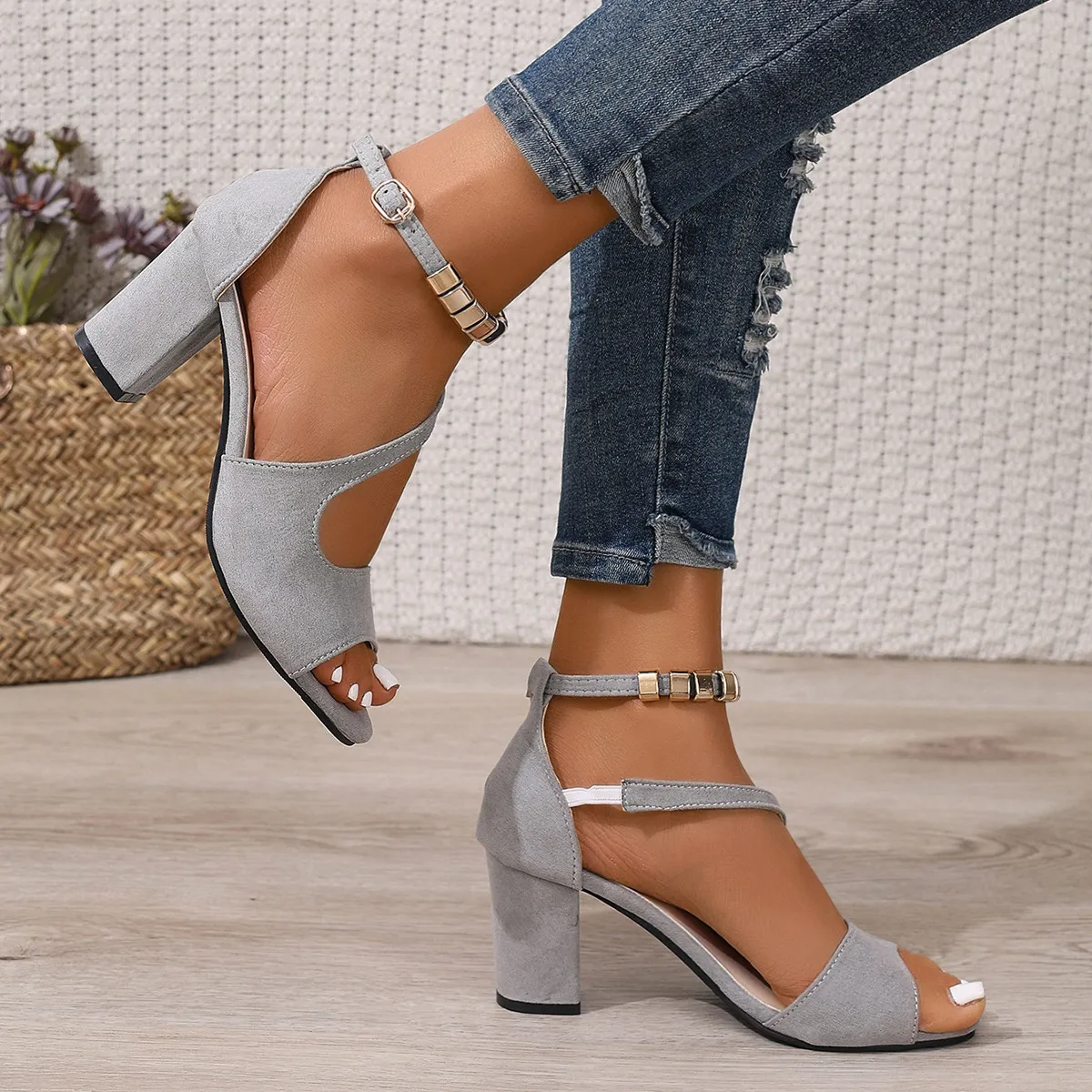 Step into sophistication with our Buckle Suede Chunky Heel Roman High Heels, the perfect blend of style, comfort, and stability for every fashion-forward woman in New Zealand. Crafted from premium suede material, these high heels feature a sturdy chunky block heel that provides support throughout your day or night, making them ideal for both workwear and special occasions.
