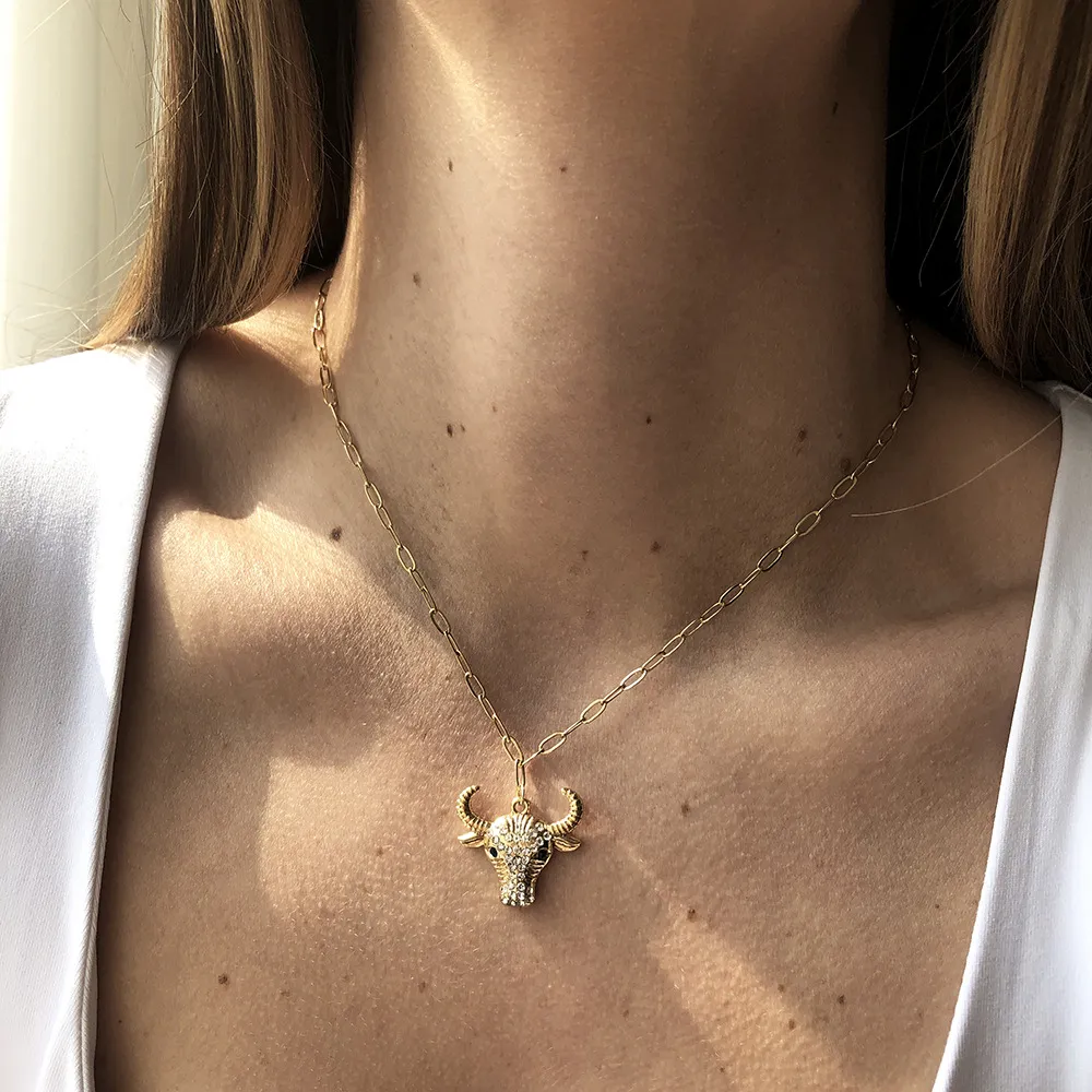 Bull Head Necklace Female Animal Diamond Hip Hop Trend Creative Clavicle Chain