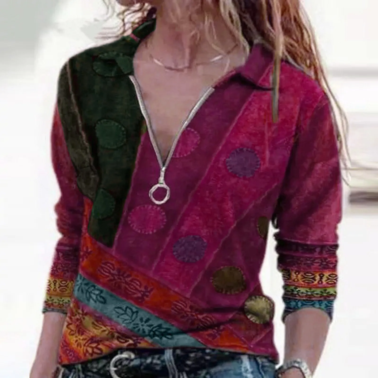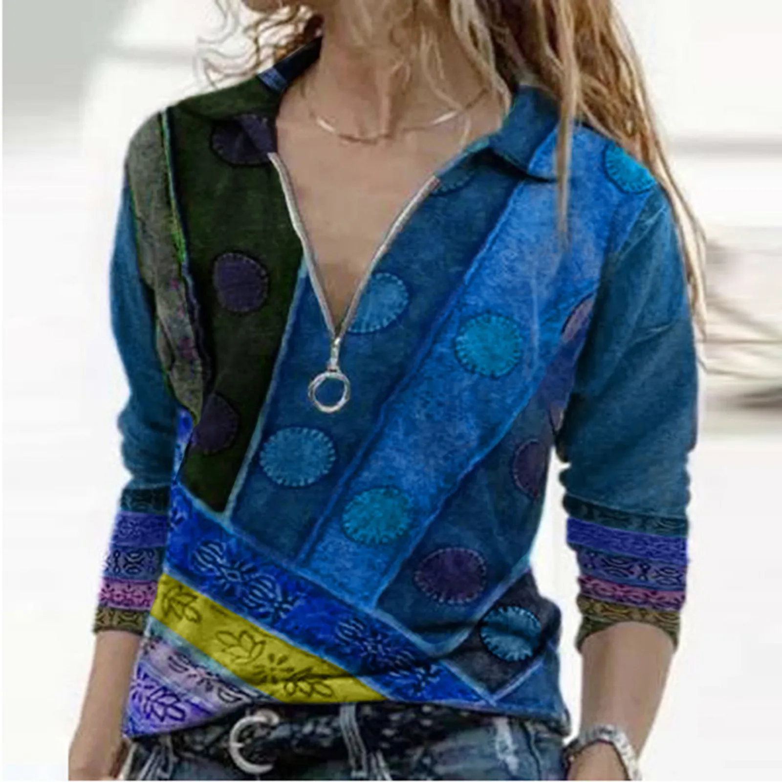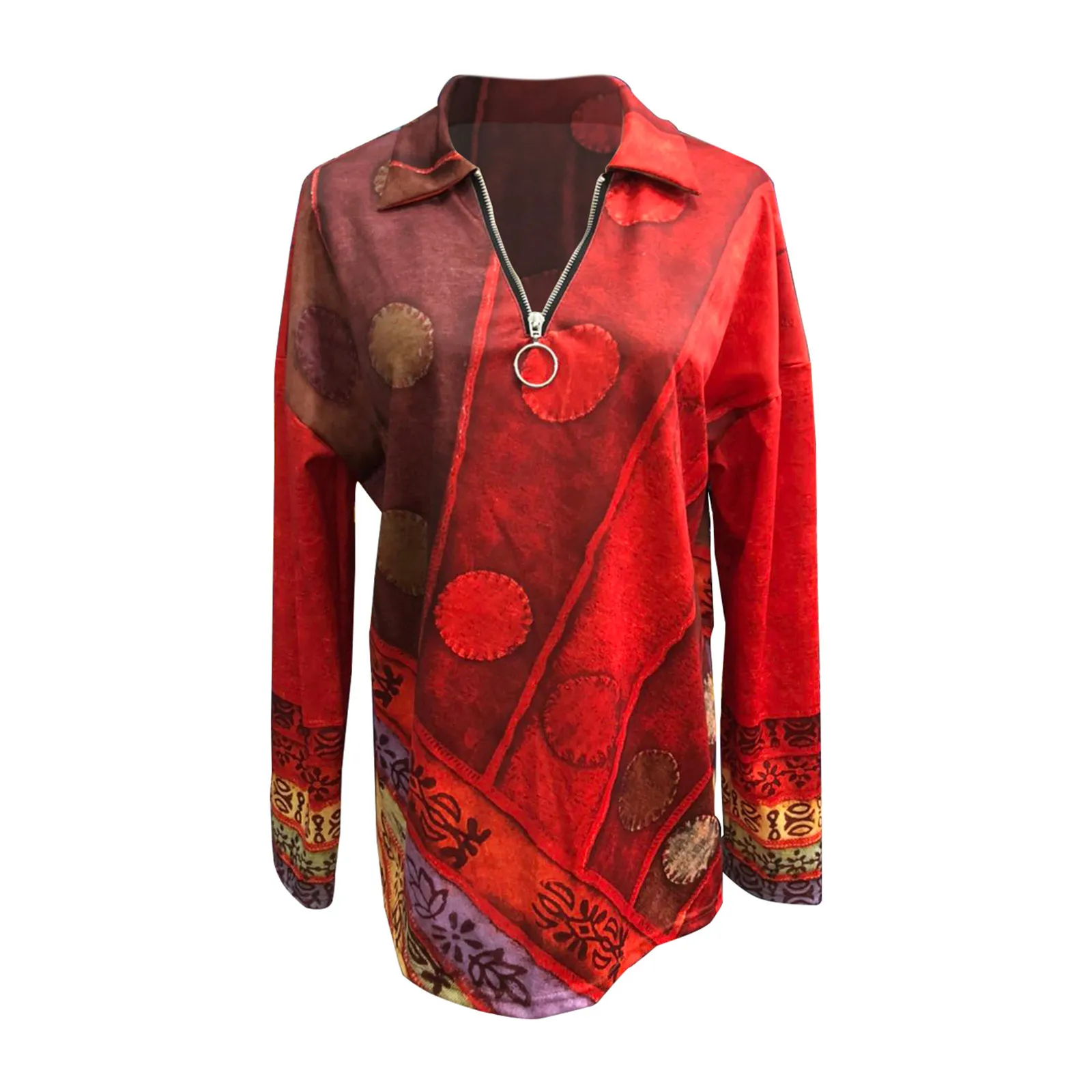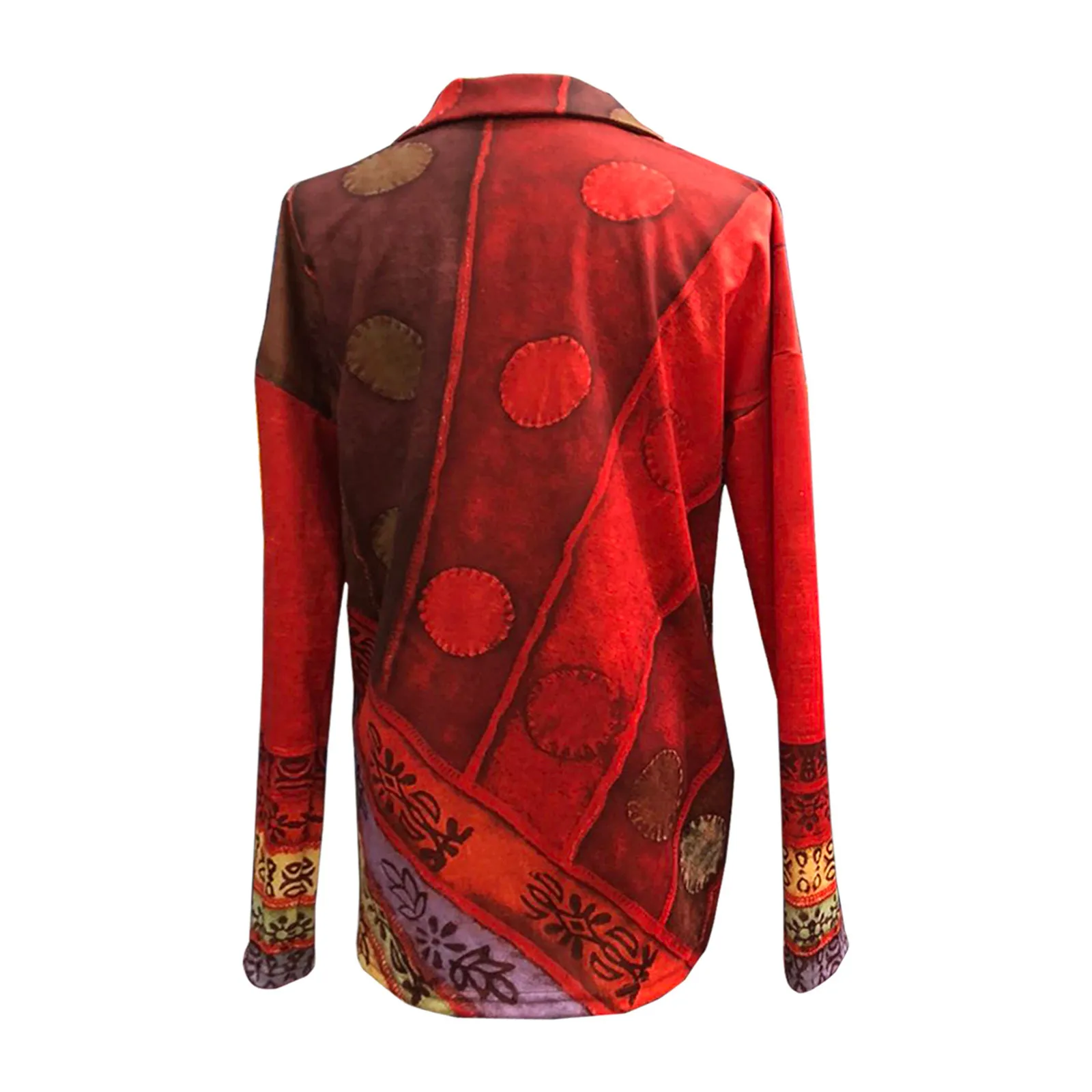 Burned Jacquard V-Neck Shirt With Zipper Print