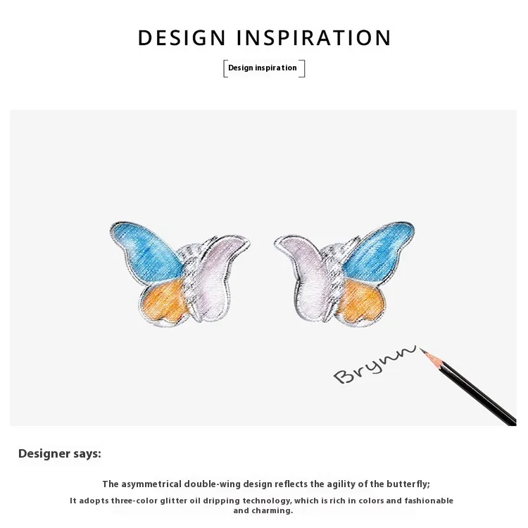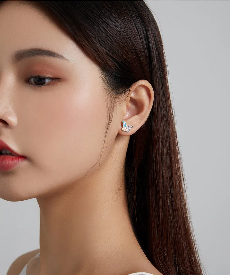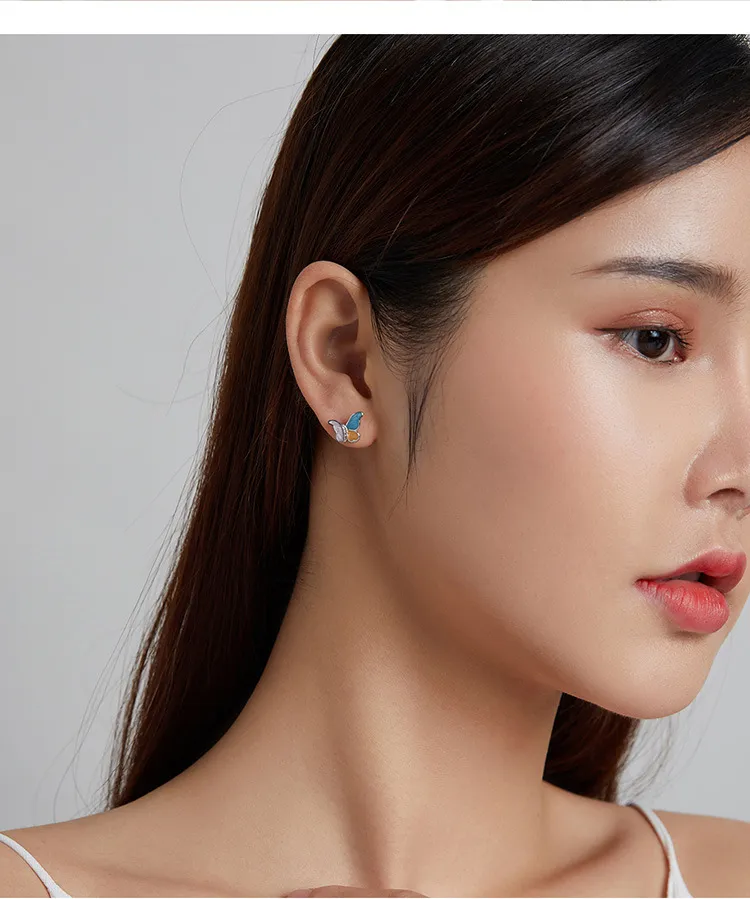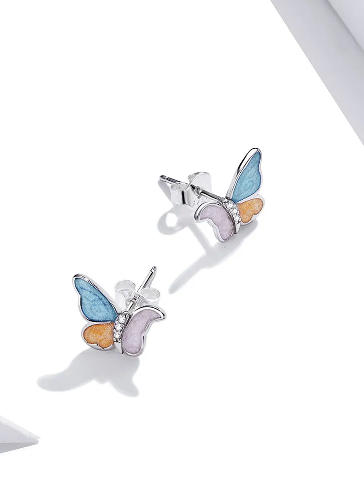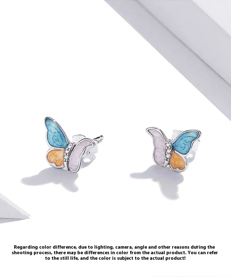 Butterfly Sterling Silver Earrings White Gold Plated Colorful Oil Necklace