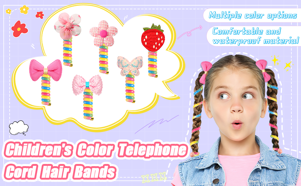 - ã€Comfortable and Hair-Friendly】Crafted with high-quality polyester material, these hair bands are not only soft and comfortable to wear, but they are also gentle on your child's hair. Unlike traditional hair ties that can cause breakage and damage, our telephone wire hair bands prevent hair tangling and keep your little one's hair in great condition.