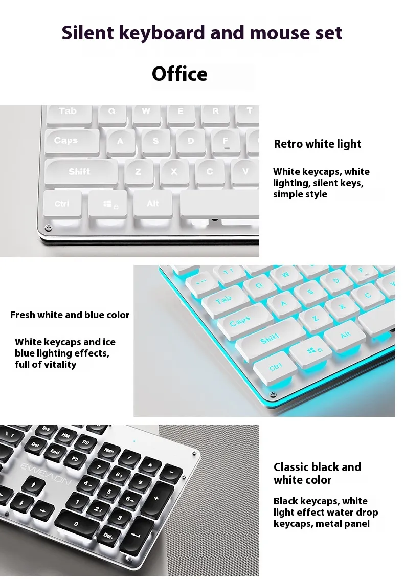 Color: [Wired mute single keyboard] white light, [Wired mute single keyboard] silver white blue light, [Wired mute single keyboard] Metal