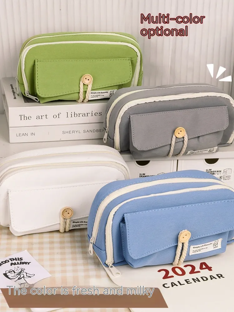 Button Pencil Case Girls Large Capacity Simple Student Creativity Canvas Stationery Bag: Stylish, Functional, and Spacious