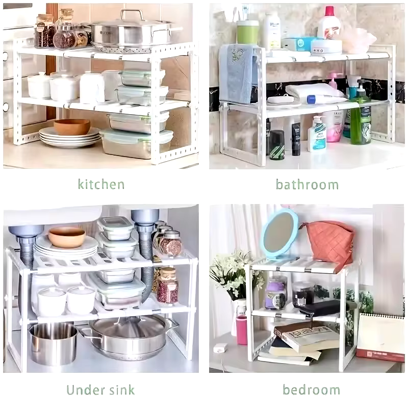 Maximize your kitchen space with these Cabinet Organizer Shelves, designed to keep your kitchen counters and pantry neatly organized. These stackable shelves provide flexible storage solutions, allowing you to customize your space and easily access items. Ideal for storing plates, bowls, spices, canned goods, and more, these durable shelves help declutter your cabinets and countertops, making your kitchen more efficient and visually appealing.