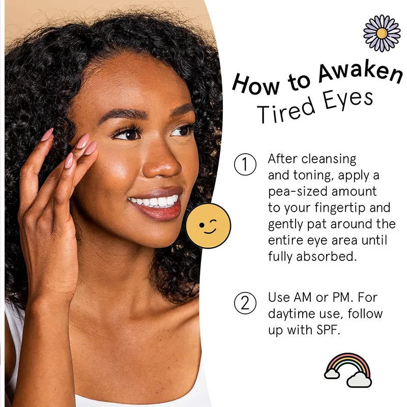Caffeine-Infused Formula: Reduces puffiness and dark circles, while stimulating blood circulation to the eye area.