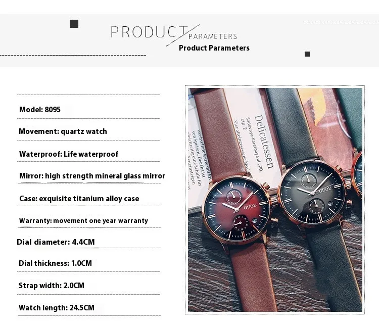 high-precision quartz movement, guaranteeing accurate timekeeping to keep your schedule on track. The dial, available in various color
