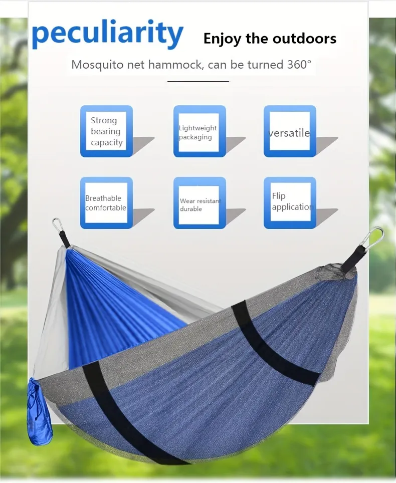 outdoor adventures. With its spacious design, protective mosquito net, and easy setup, this hammock allows you to relax and rest in the
