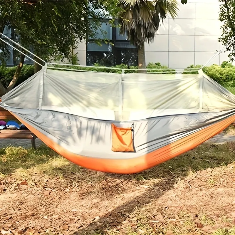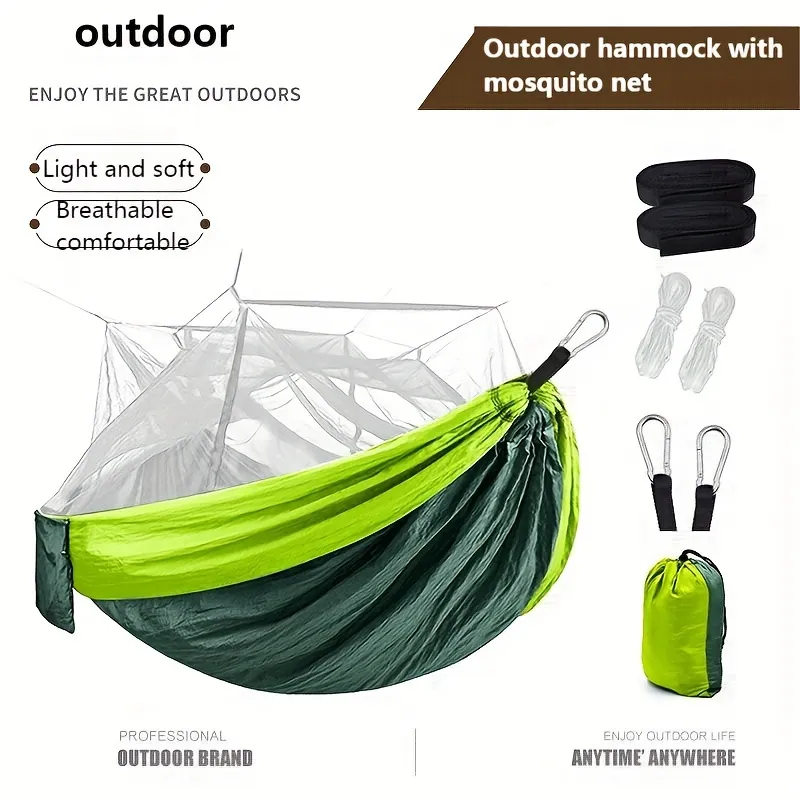 Sleep comfortably under the stars with the Double Camping Hammock with Mosquito Net, a portable and spacious hammock tent designed for two people. Equipped with a protective mosquito net and secure tree straps, this hammock provides a convenient, bug-free resting spot for camping, hiking, and travel. Lightweight, compact, and easy to set up, this hammock tent is the perfect choice for outdoor enthusiasts who value both comfort and protection in their gear.