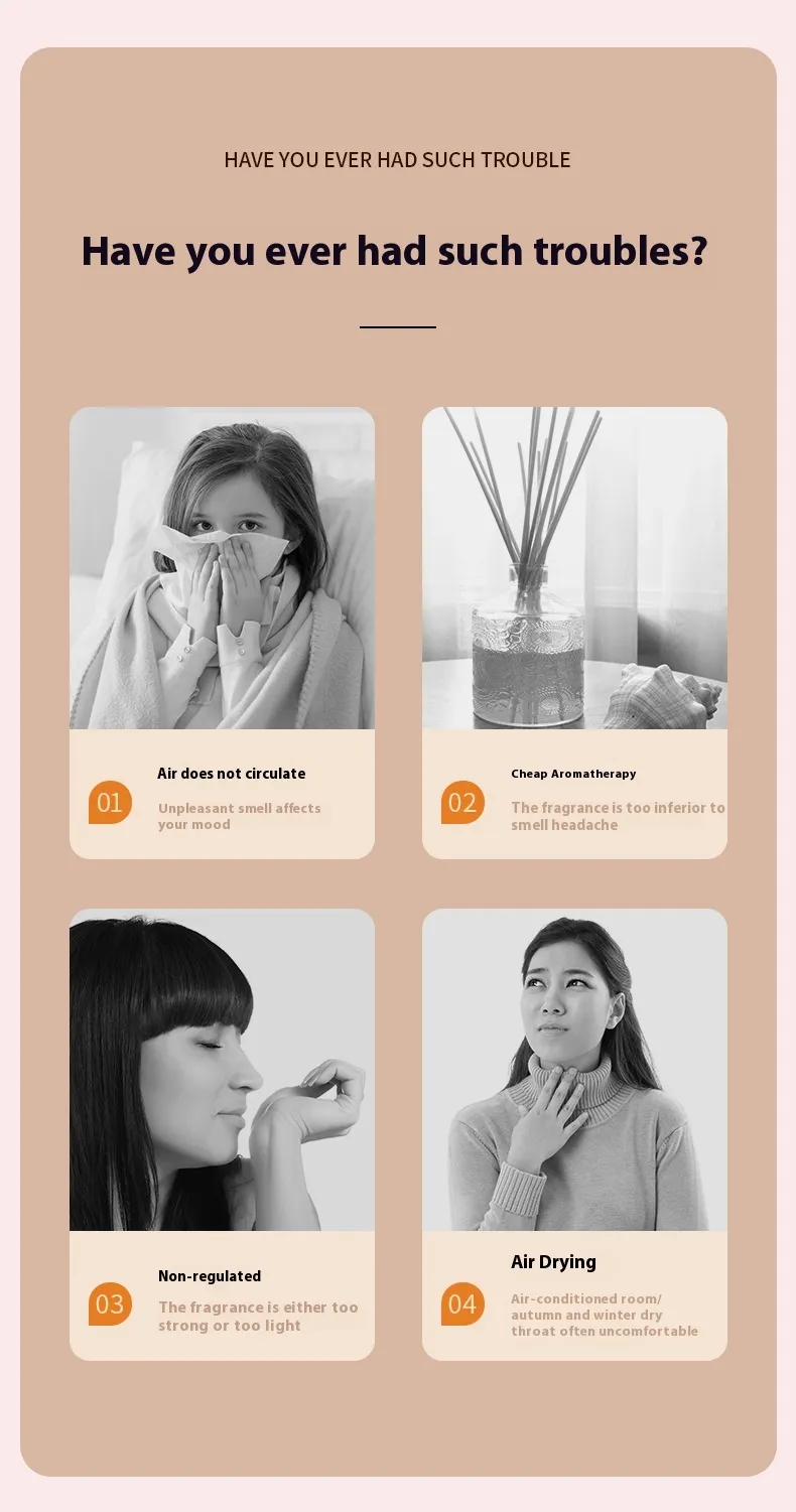 The diffuser works as a humidifier, adding moisture to the air and helping to prevent dryness. This can improve the overall air quality in your home, making it easier to breathe and helping to relieve dry skin, throat irritation, and respiratory issues.