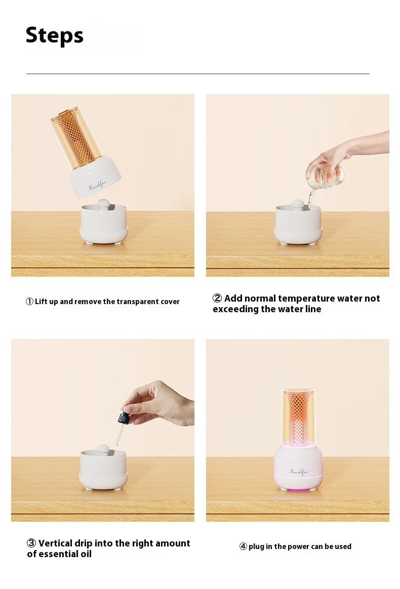 Using the Candlelight Aroma Diffuser Color Light Humidifying USB Night Light is incredibly simple. Here's a step-by-step guide to ensure you get the most out of your diffuser: