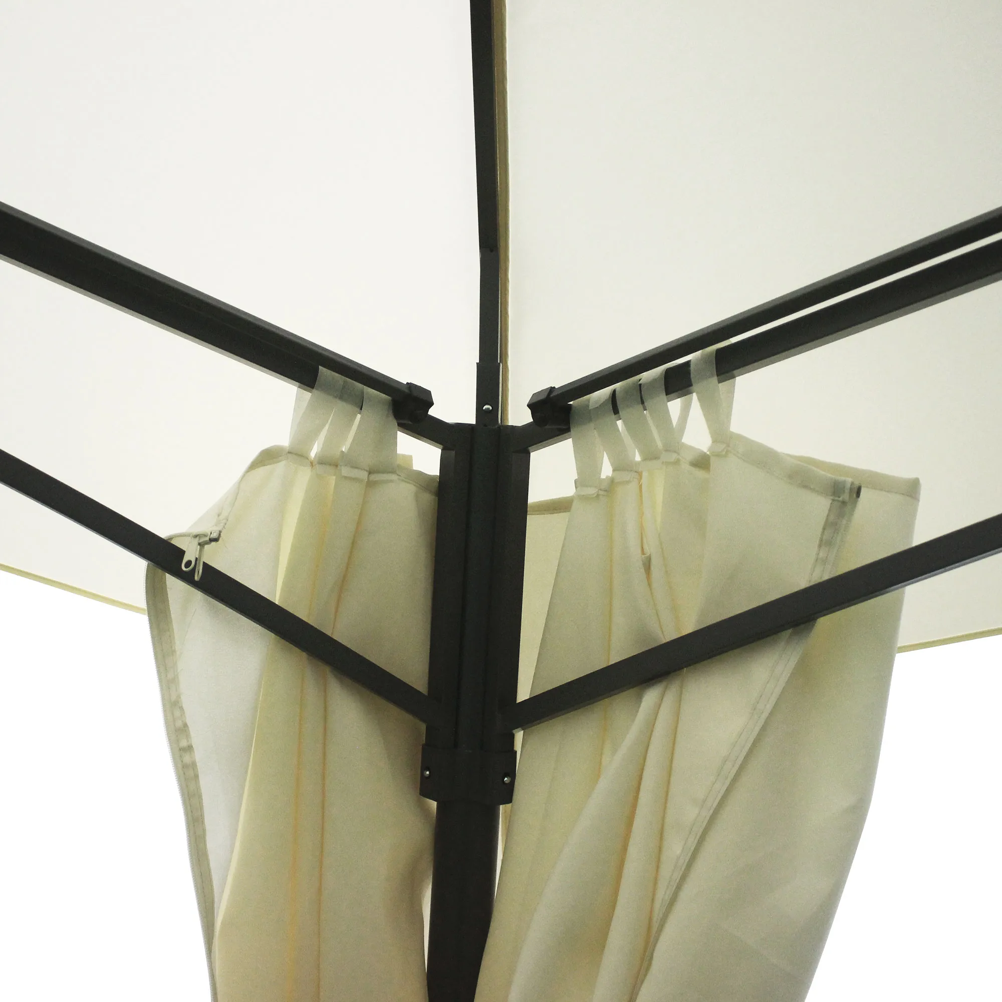 Our canopy gazebo features a rounded 2-tier roof to stop sunburns and keep you cool. Made of fade-protected PA-coated polyester and strong steel, our gazebo canopy holds up to weathering and is ready for repeat use. Keep guests comfortable in the shade with an extra-large floor plan. With curtains closed, it can keep out wind, glare, and winged annoyances. The vent provides a pleasant breeze when you use the sidewalls. So, plan a picnic and prepare a barbeque, get out, get comfy, get Outsunny. Features: - Spacious yet elegant design - 2-tier vented rooftop to enjoy the breeze and better endure the wind - PA-coated polyester protects it and you from UV - Easy hook and loop sidewall curtains keep out wind, glare, and winged annoyances - Steel frame for stronger support - Eight support stakes for mounting it to soft ground - Assembly required Specification: - Color: Beige - Materials: Steel, Polyester - Overall Dimensions: 13' L x 9.7' W x 9' H - Eaves Height: 6.2' H - Column Spacing: 12.1' L x 9' W - Item Label: 84C-326CW - Please do not use it during floods, extreme wind, or snow Package Includes: - 1 x Gazebo - 8 x Ground Stake - 1 x Manual.
