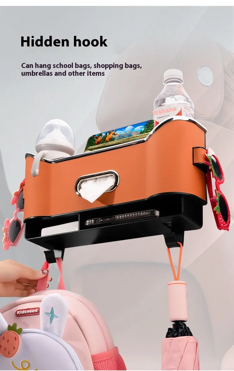Tired of spilled drinks, lost toys, and cluttered car seats? Our multifunctional backseat organizer keeps everything in place with cup holders, tissue storage, and hooks – making road trips, school runs, and daily commutes neater and stress-free!