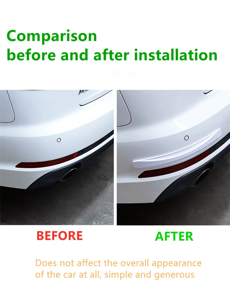 Installation is quick and easy—each protection strip comes with a strong adhesive backing that securely attaches to your car’s bumper without damaging the paint. Simply peel off the backing and apply the strips to your bumper’s corners or any other vulnerable areas. The flexible design allows the strips to conform to the contours of your bumper, ensuring a snug and secure fit on most vehicle types, including sedans, SUVs, trucks, and hatchbacks.
