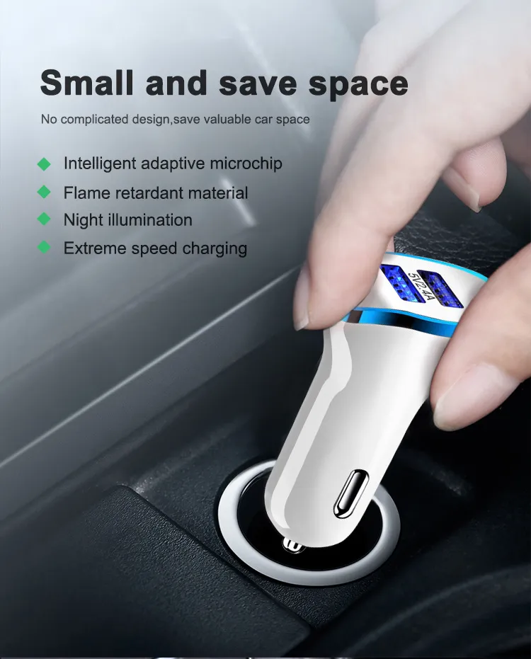 The Car Charger with Dual USB is designed to fit into your vehicle's cigarette lighter socket without taking up too much space. Its compact size ensures that it doesn’t interfere with other car functions or create clutter in your car. This makes it ideal for use in any vehicle, whether it’s a small compact car or a larger SUV.