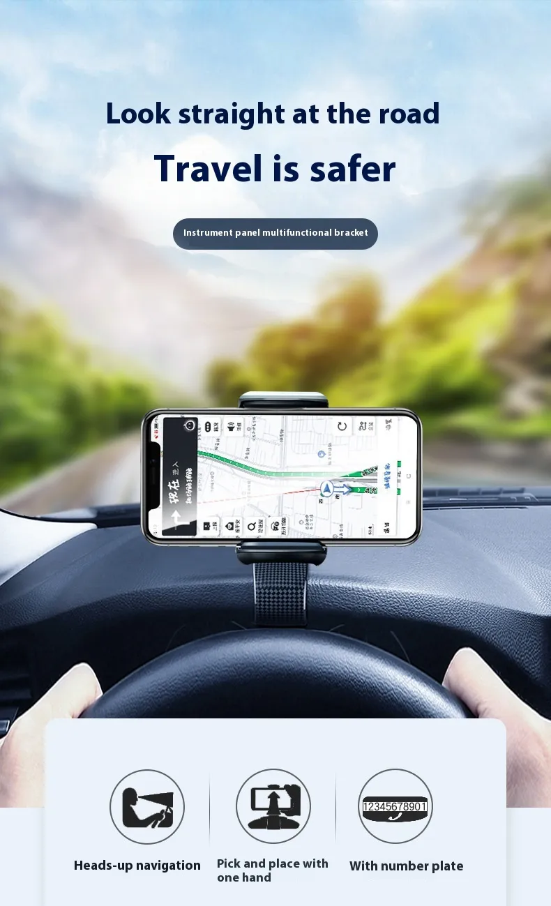 Designed to sit securely on the dashboard, the holder uses a non-slip, vibration-resistant base that maintains stability even on uneven roads, sharp turns, or sudden stops. The mounting system is engineered to grip the dashboard surface firmly without leaving residue or causing damage, ensuring compatibility with a wide range of vehicle interiors.
