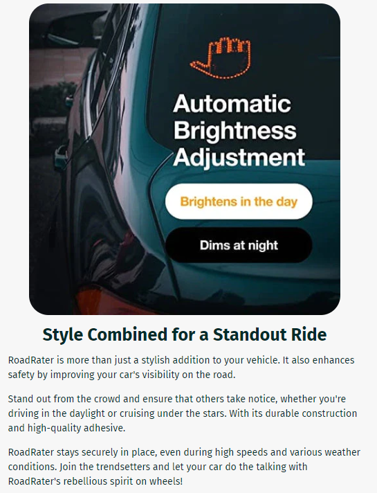 - Innovative Gesture Modes: Offers three unique gesture modes, perfect for expressing appreciation, love, or caution on the road. Adds a personal touch to every journey.