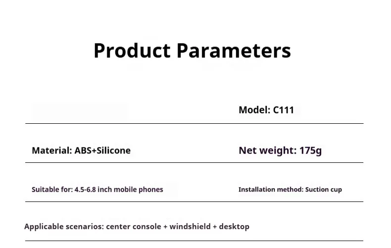 - Strong Suction Cup – Secure attachment to dashboards or windshields.