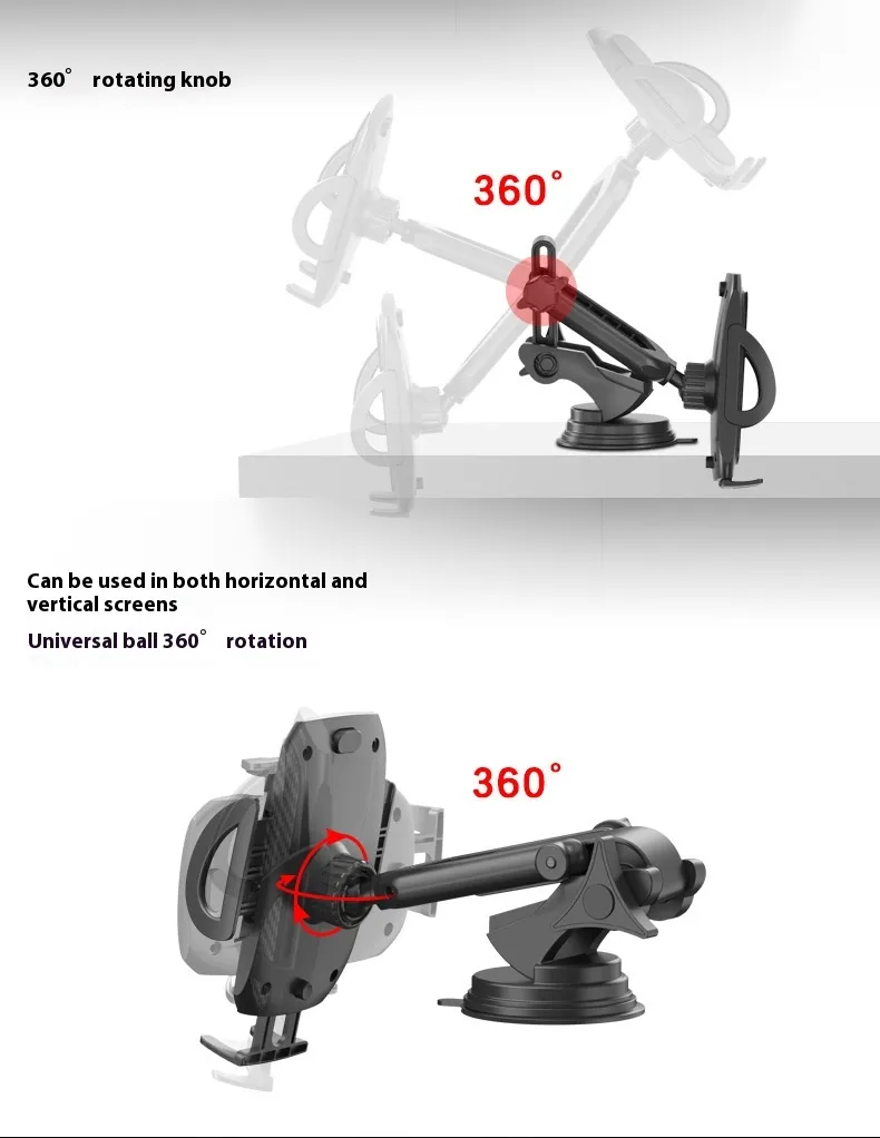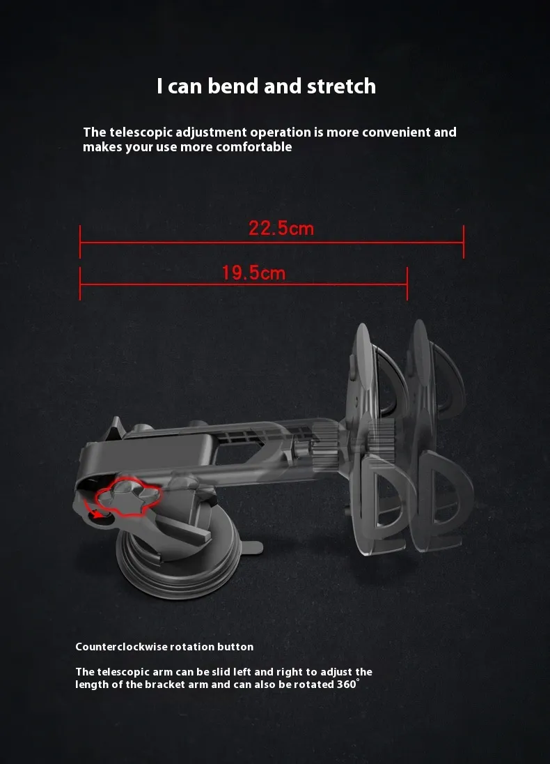 Car Mobile Phone Bracket Sucker Double Rod Rotating Telescopic Arm
