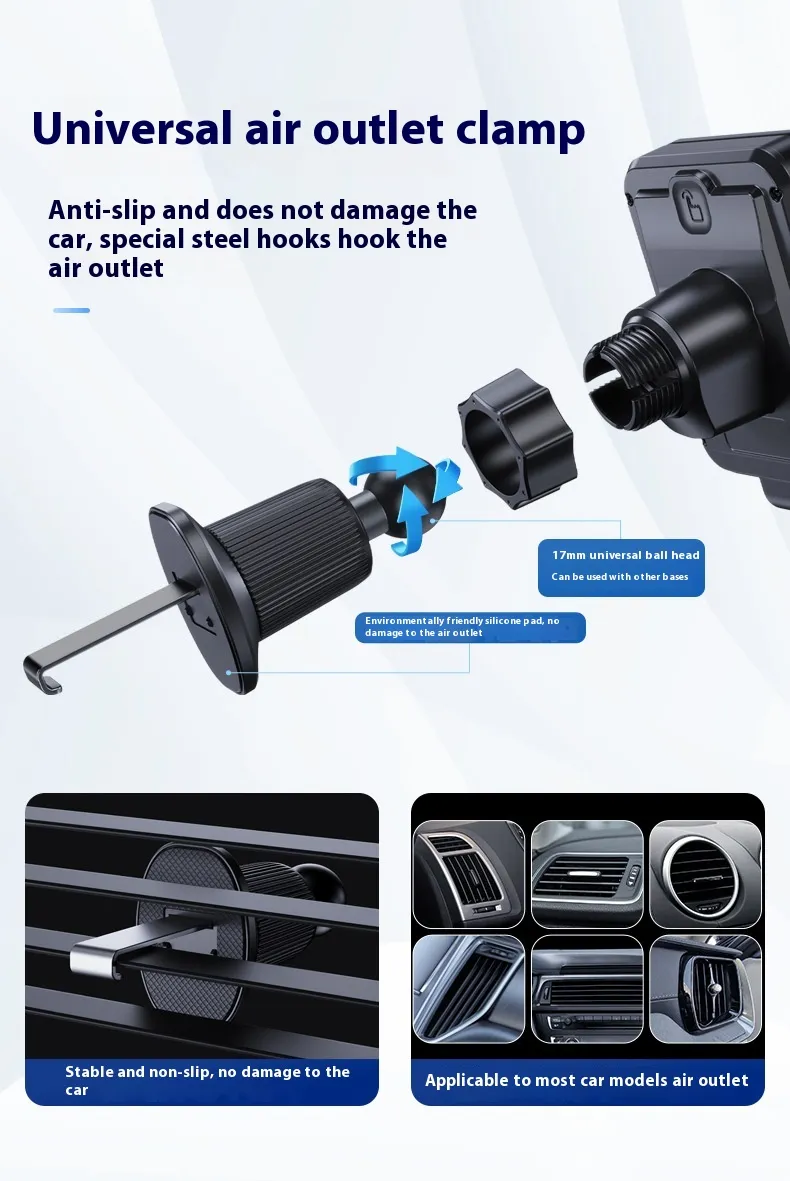 This car phone holder supports 15W high-speed wireless charging for compatible devices, reducing downtime and keeping your phone ready to use. The gravity design automatically adjusts to the size of your phone, holding it firmly in place even on bumpy NZ roads. Its sleek and compact design blends seamlessly into any vehicle interior.
