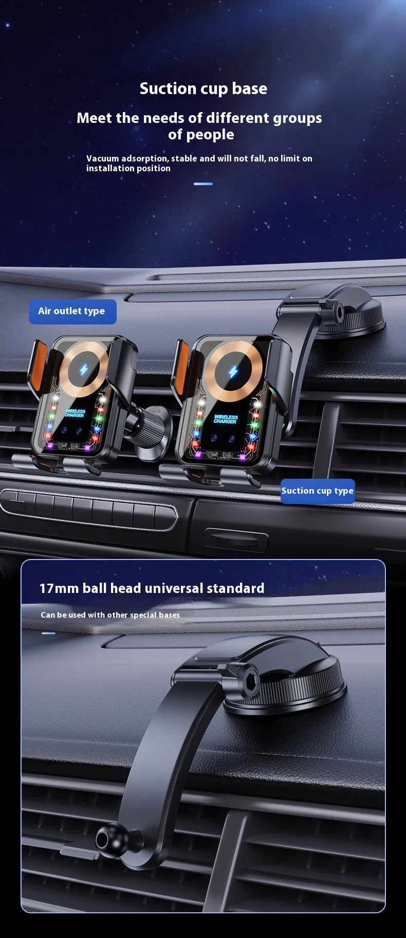 Car Wireless Charging Stand Fast Charge 15W High Power Automobile Phone Holder Gravity