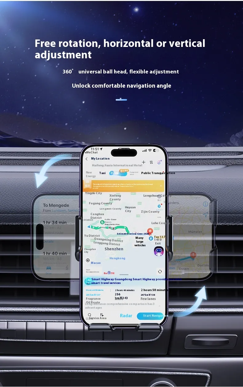 - Gravity-Based Phone Holder – Automatically adjusts and secures your device.