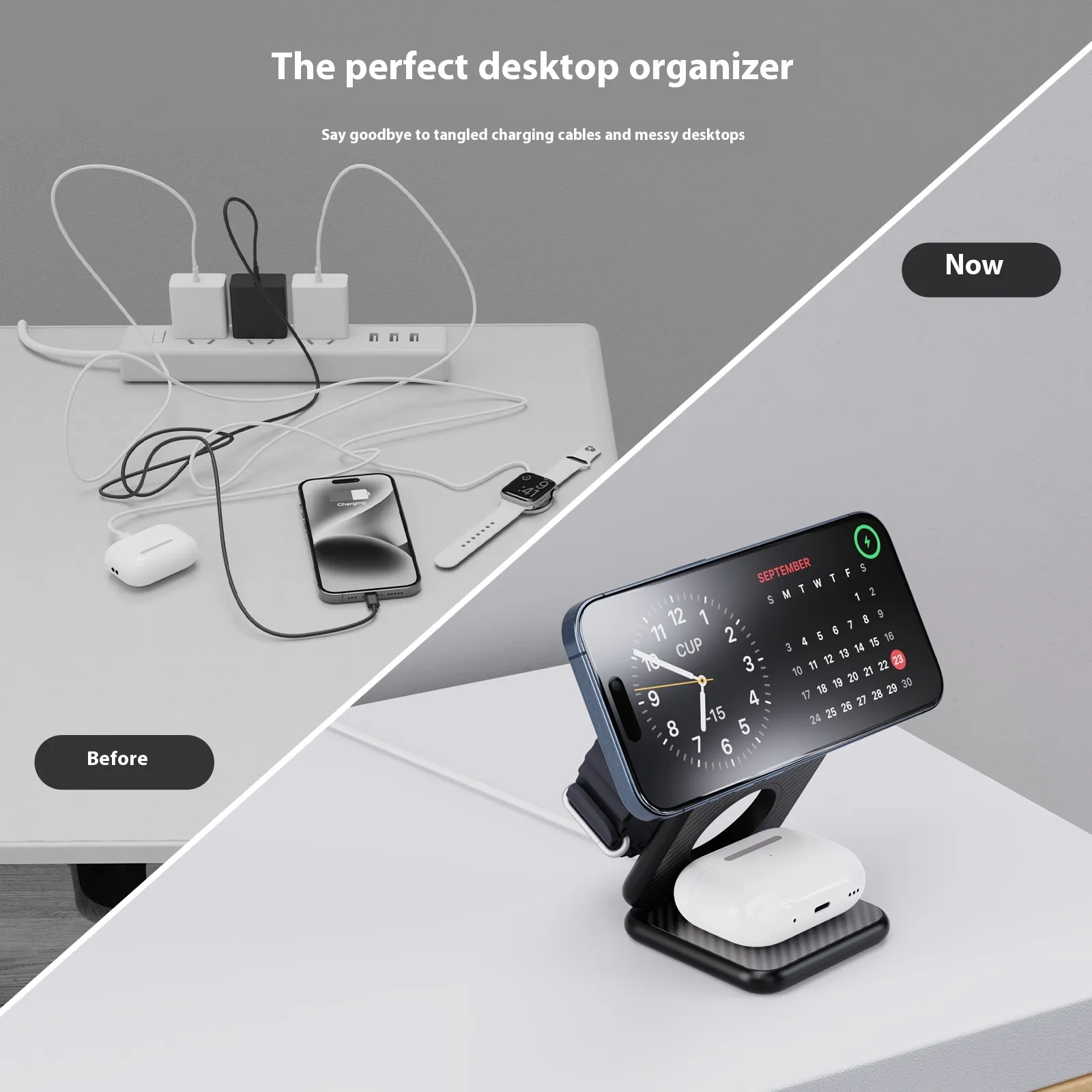 Carbon Fiber Three-in-one Magnetic Wireless Charger