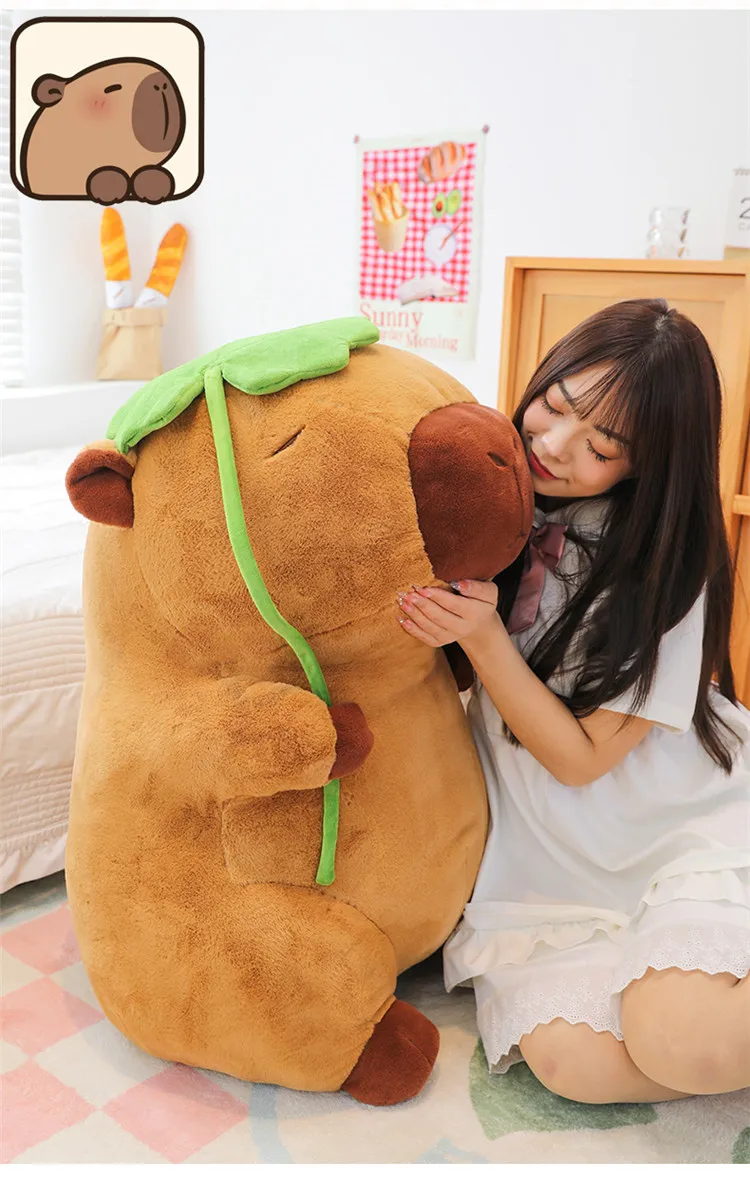 Made with premium, ultra-soft materials, the capybara plush offers a soothing and comforting experience, whether you're using it as a pillow, a decorative piece, or a cuddly companion. Its large size and gentle design make it perfect for napping, playing, or simply adding a unique touch to any room. The playful lotus leaf detail adds an extra element of fun, making this plush toy not only a great gift but a fun addition to any collection.
