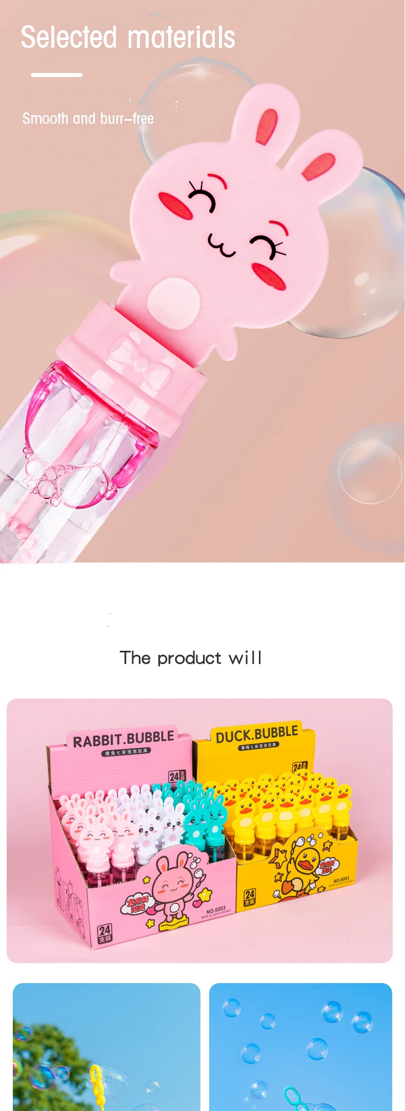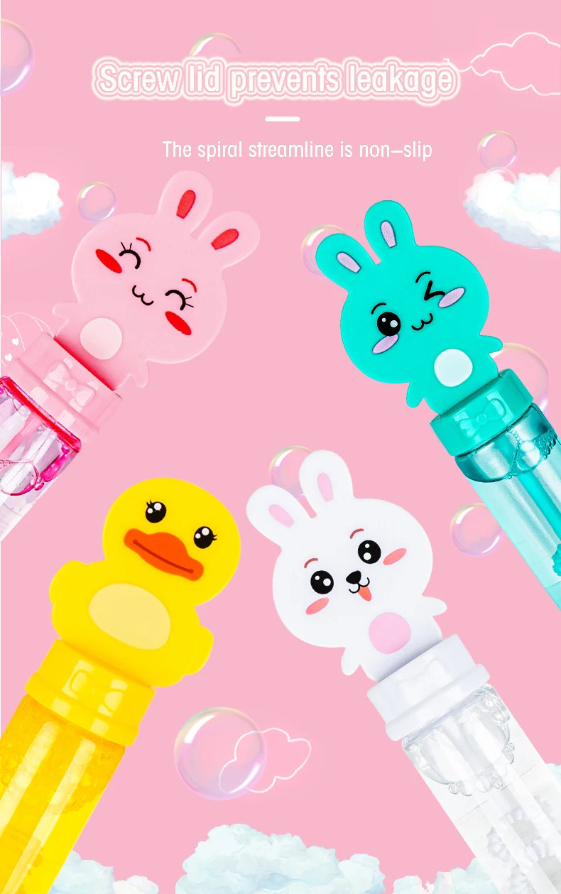 - The bubble sticks come in cute duck, dinosaur, and rabbit designs that appeal to children. These delightful characters make bubble blowing even more enjoyable for kids.