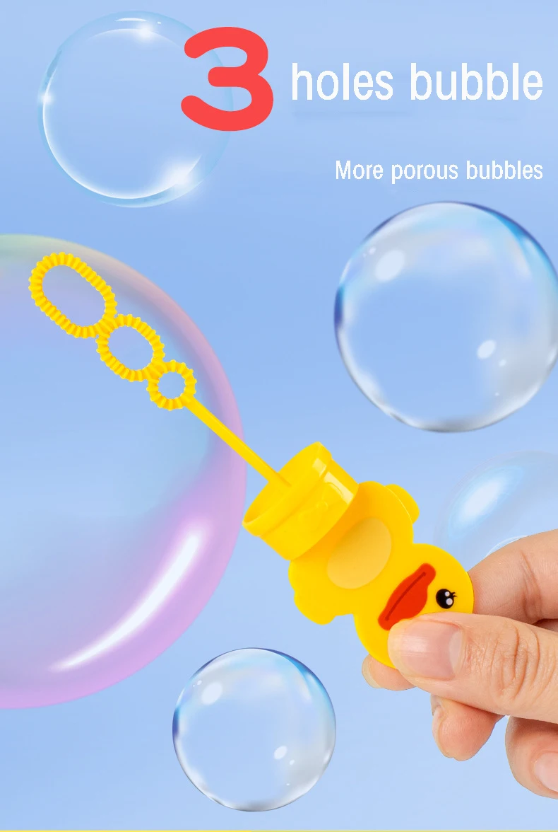 Bring joy and excitement to your children's outdoor playtime with these adorable Cartoon Mini Bubble Sticks. Featuring charming duck, dinosaur, and rabbit designs, these fun and interactive bubble toys are perfect for kids. Ideal for summer activities, parties, and as playful gifts, these bubble sticks provide endless bubble-blowing fun.
