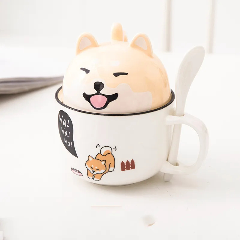 Cartoon Office Ceramic Mug With Lid Spoon