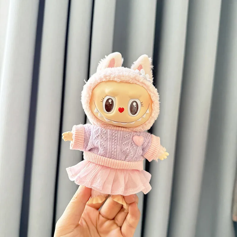 The Cartoon Plush Toy Doll Clothes Love Sweater Yarn Dress is a fun and stylish accessory that makes plush toys more interactive, adorable, and collectible.