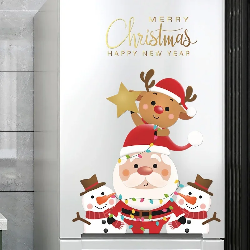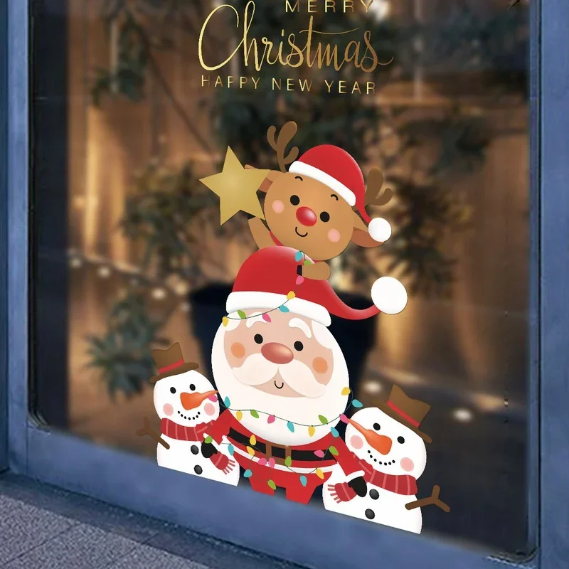 Welcome the holiday season in style with the Cartoon Santa Claus, Elk, and Snowman Door & Window Stickers. These
