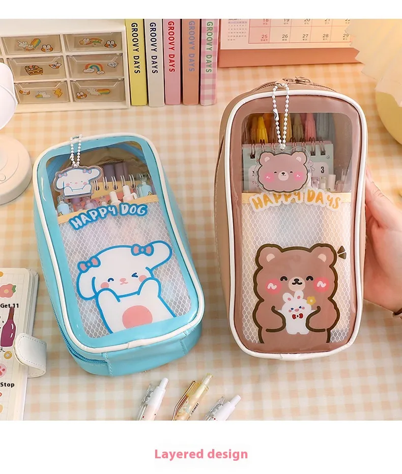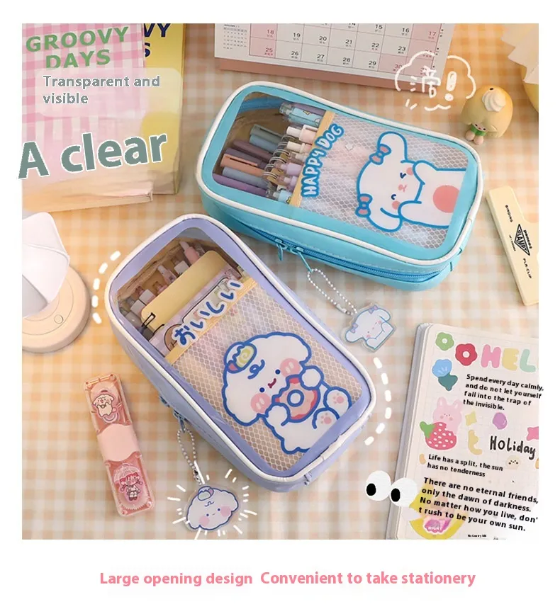 Cartoon Stationery Large Capacity Transparent and Cute Student Pencil Case: Organize Your Stationery in Style