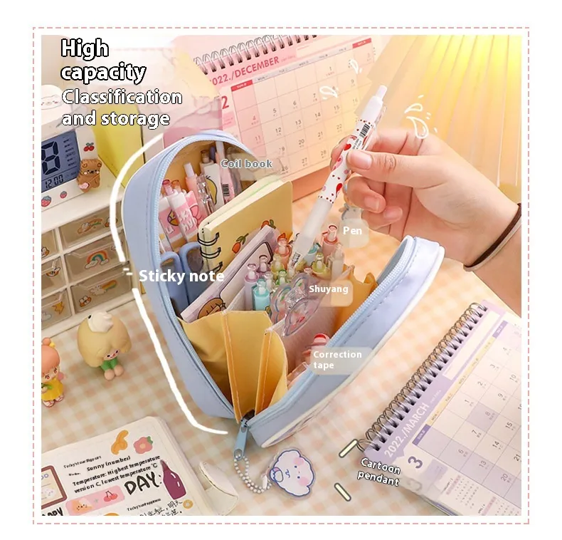 Stay organized and stylish with the Cartoon Stationery Large Capacity Transparent and Cute Student Pencil Case. Perfect for students and stationery enthusiasts, this pencil case offers a combination of functionality, cuteness, and durability. With its large capacity and transparent design, you can easily store all your essential stationery items, from pens and pencils to erasers, rulers, and more. Whether you're in school, at the office, or just a fan of quirky stationery, this cute pencil case is the perfect solution to keep your tools organized.