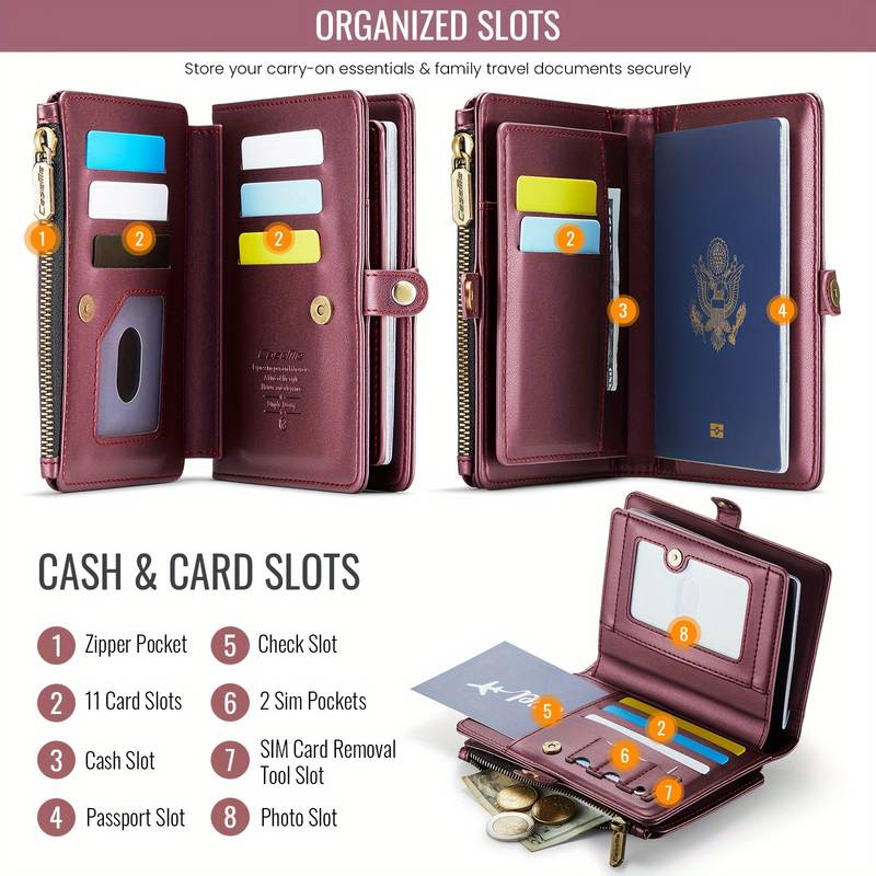 The CaseMe Passport Holder with Zipper is the ultimate solution for organizing and securing your important travel documents and essentials. With RFID-blocking protection, 11 card slots, multiple cash compartments, and a stylish design, this passport holder offers everything you need for a seamless and secure travel experience. Available in multiple colors, it’s the perfect travel accessory for those who value both style and security.