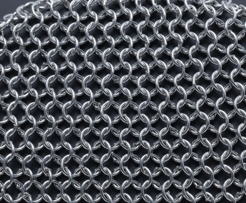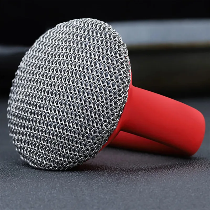 Chainmail Stainless Steel Design: Interlinked ring structure removes residue effectively while protecting seasoning layers.