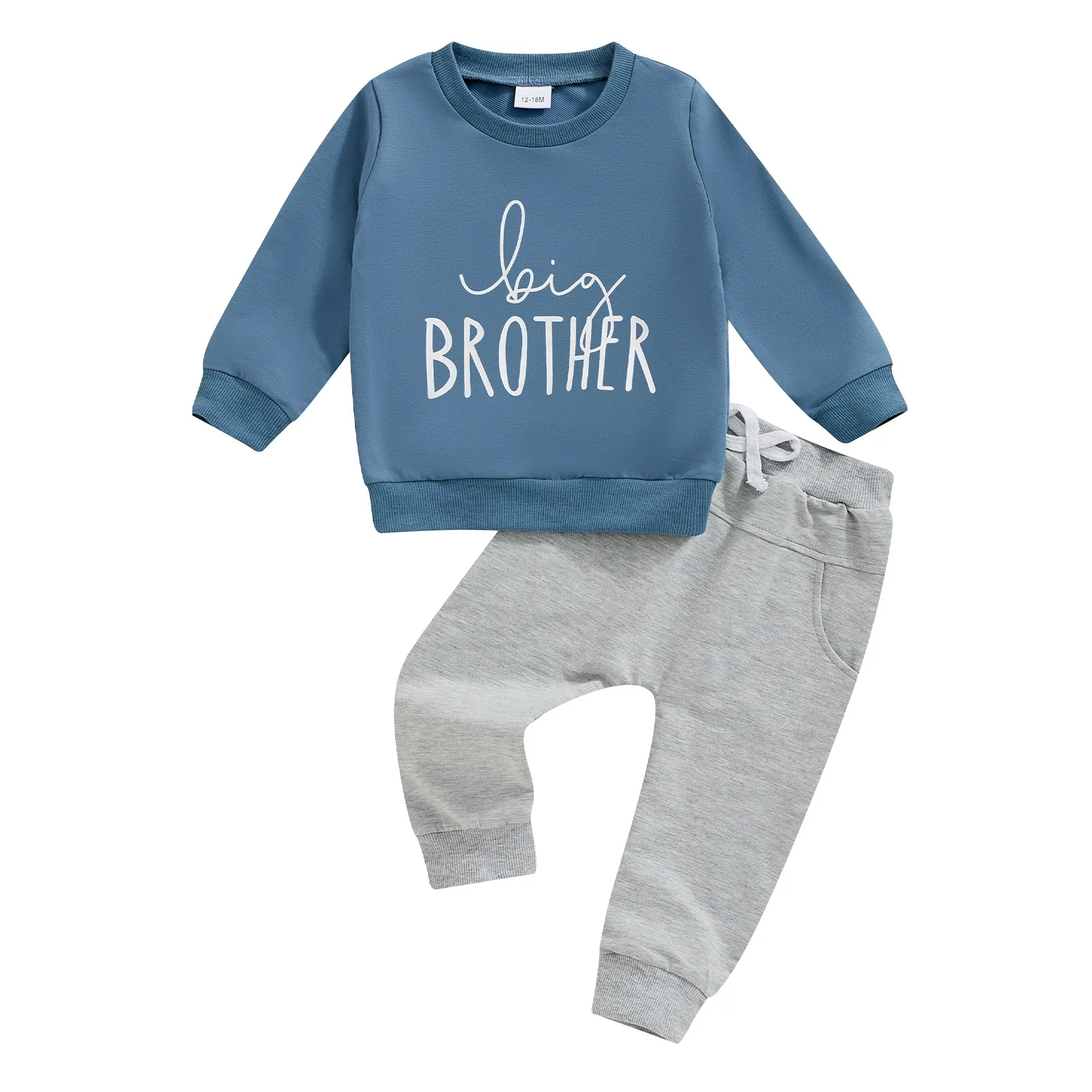 Casual Boy Letter Printed Crew Neck Sweatshirt Trousers Suit