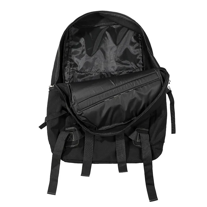 The backpack is equipped with reliable zipper closures and secure buckle straps, ensuring your belongings stay safe and protected.
