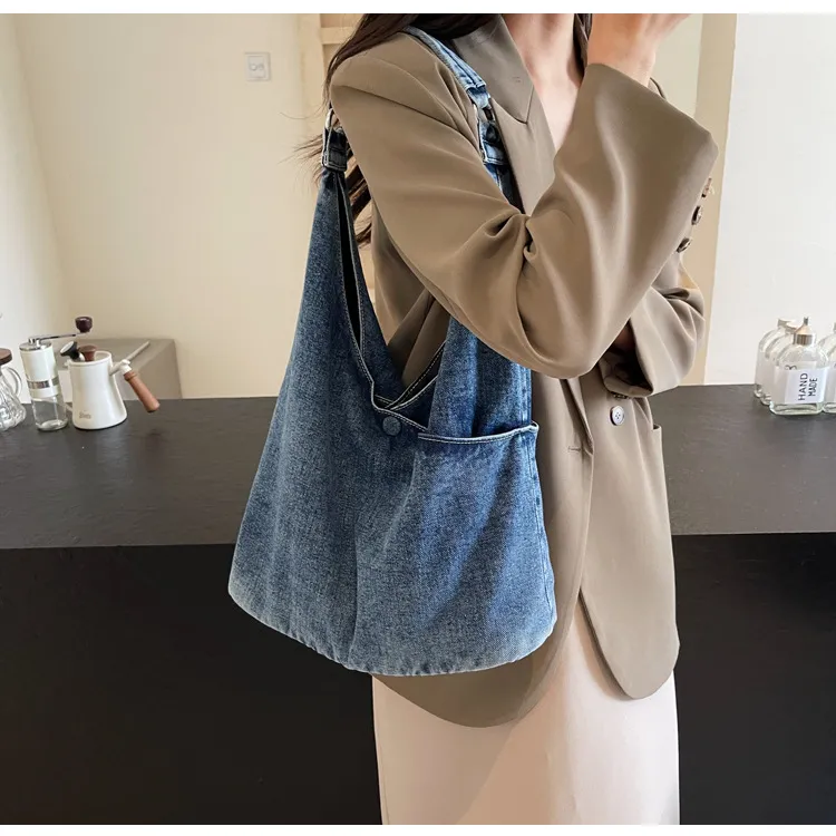 Ideal for New Zealand women who want a practical yet stylish bag, this large capacity denim shoulder tote is the perfect everyday accessory.