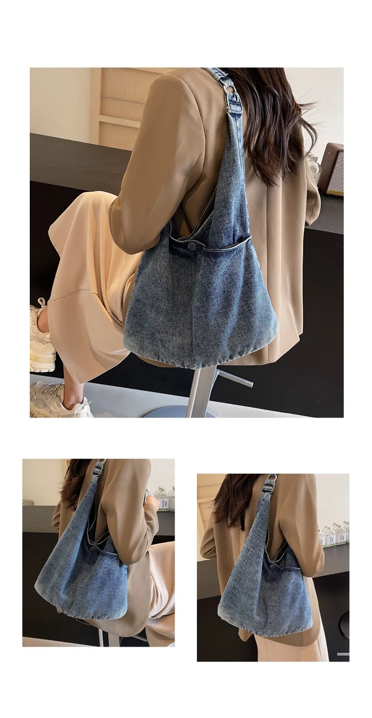 Ideal for New Zealand women who want a practical yet stylish bag, this large capacity denim shoulder tote is the perfect everyday accessory.