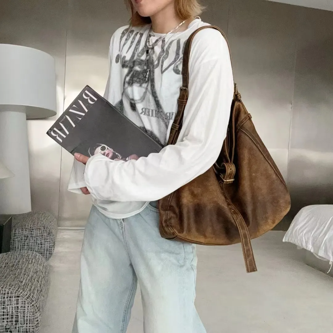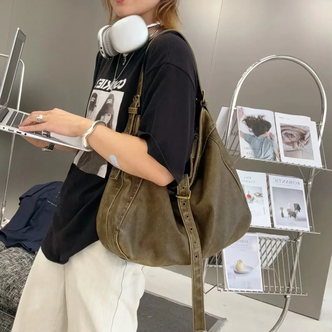 Casual Large Capacity Shoulder Crossbody Belt Buckle Underarm Tote Bag