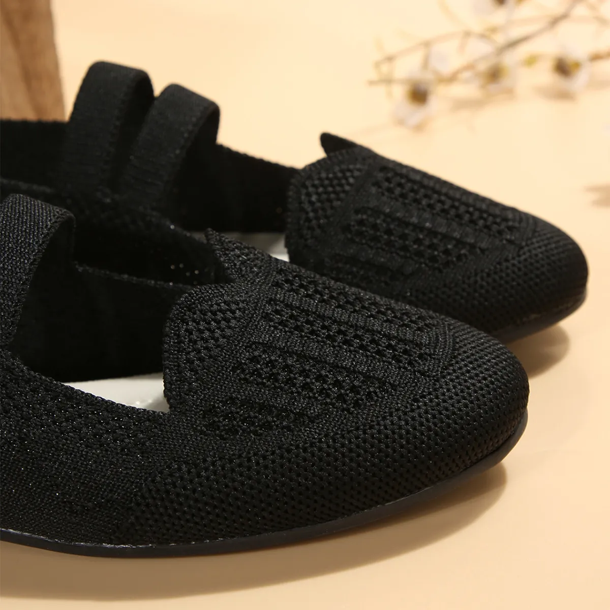 Casual Mesh Flats Women's Low-cut Round Toe Slip-on Knit Shoes