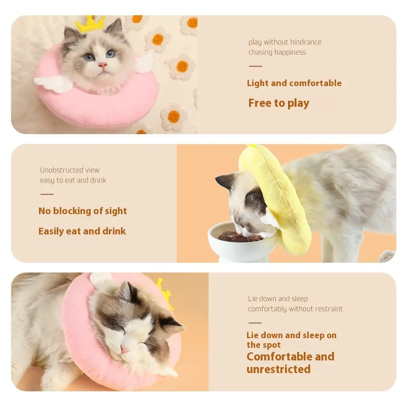 The Cat Collar Pet Anti-Licking Collar for Sterilization is specially designed to prevent cats from licking or biting at wounds or surgical areas, particularly after sterilization procedures. Made from soft, flexible materials, this collar is comfortable and gentle on your cat's neck, reducing stress while effectively stopping unwanted licking and scratching. Unlike traditional stiff recovery collars, this anti-licking collar allows for greater comfort and mobility, ensuring that your pet can eat, sleep, and move around without difficulty.